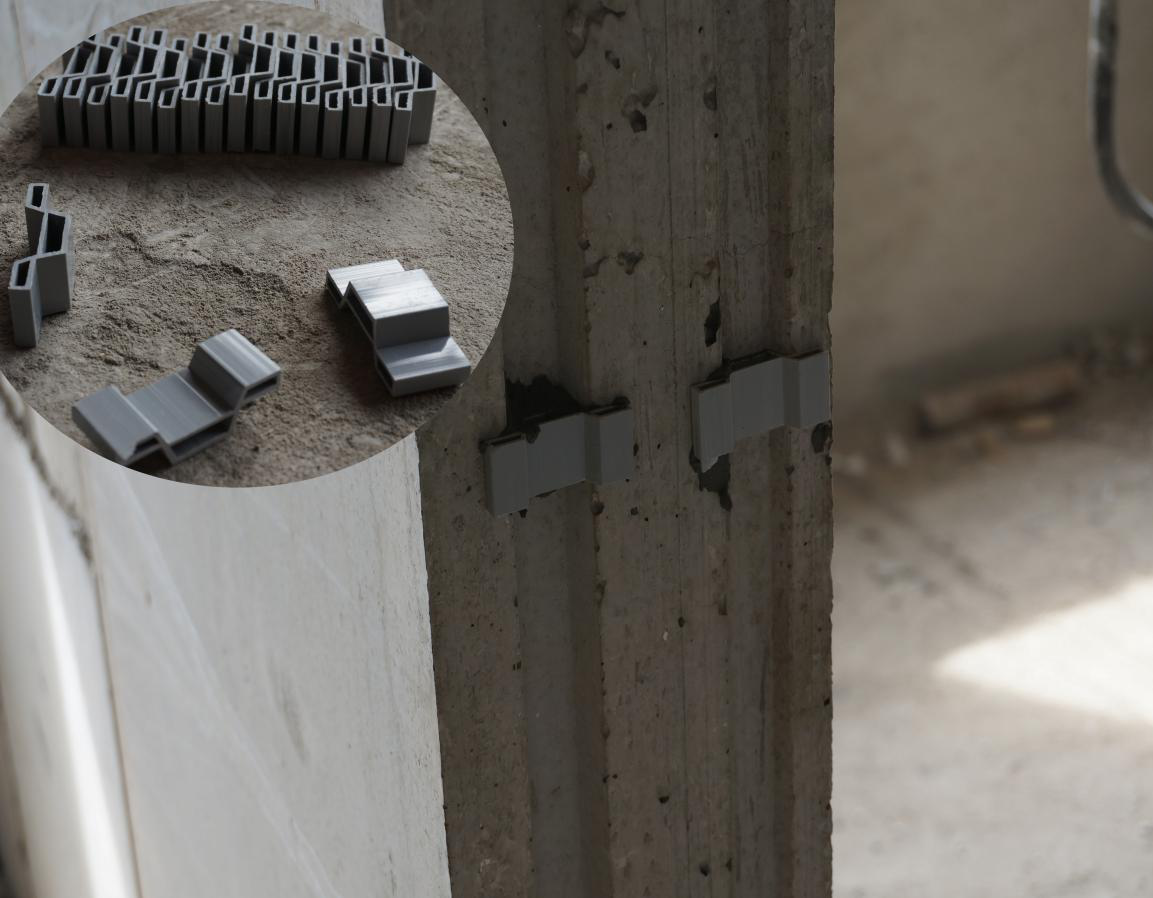 準備膠楔,拿好鐵錘,待對準線的時候,撬起墻板不動,用膠楔固定,鐵錘敲緊,由于墻板對線就位為粗調校,加上膠楔緊固時稍有微小錯位,一般需要重新調校即微調(一般在5mm以內的平整度調整),板下端可通過捶打膠楔使之調整在允許偏差范圍以內。