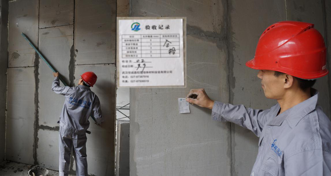 對所安裝的墻板進行全面檢查后填寫驗收記錄表并粘貼在墻板上。