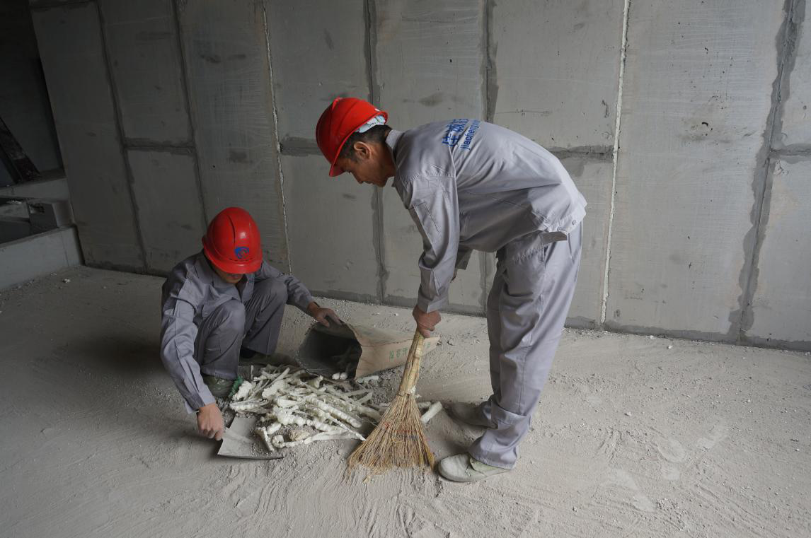 每班作業完后,清理施工中產生的建筑垃圾并放置到指定地點。